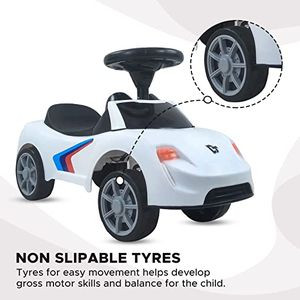 Easy Riding Experience: Introduce your child to the world of riding with our easy-to-ride ride-on. It serves as a walker, supporting your little one's first steps. As they gain confidence, riding becomes a fun-filled adventure. With a foot drive system, they'll enjoy an amazing riding experience while developing balance and coordination.